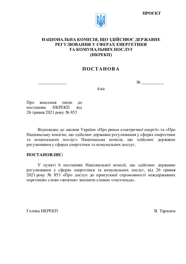Документ временно ограничивает доступную пропускную способность, которая распределяется на суточных и месячных аукционах на 2021 год, в части межгосударственных перетоков между Украиной и государствами, которые не являются сторонами Энергетического Сообщества, до 0 МВт.