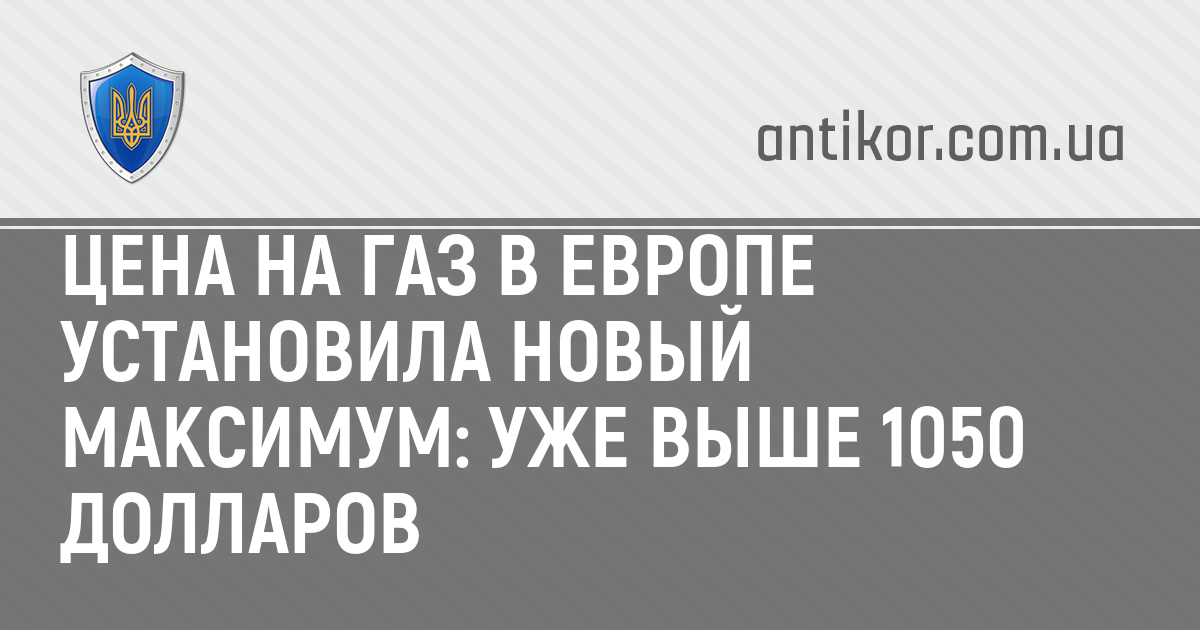 Цена на газ в Европе установила новый максимум: уже выше 1050 долларов