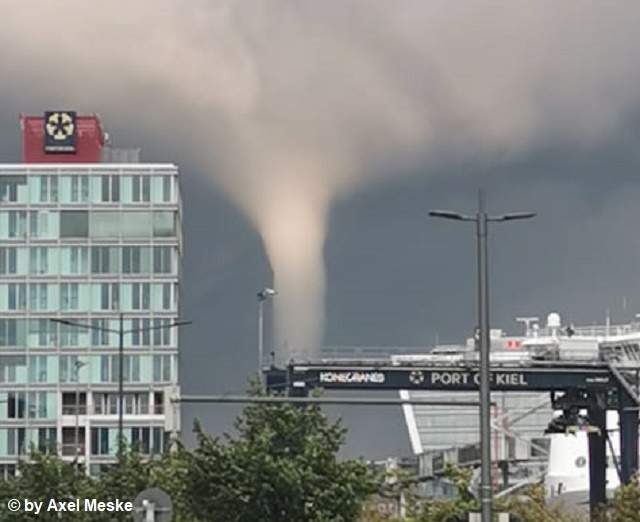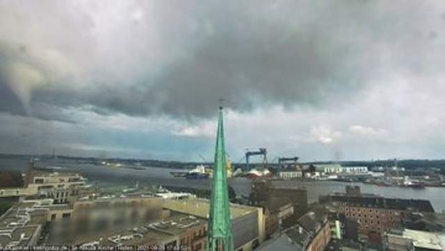 Водяной смерч возник на Балтийском море, однако добрался и до берега. Удар стихии нанес ущерб, повредив имущество и бросив нескольких человек прямо в воду.