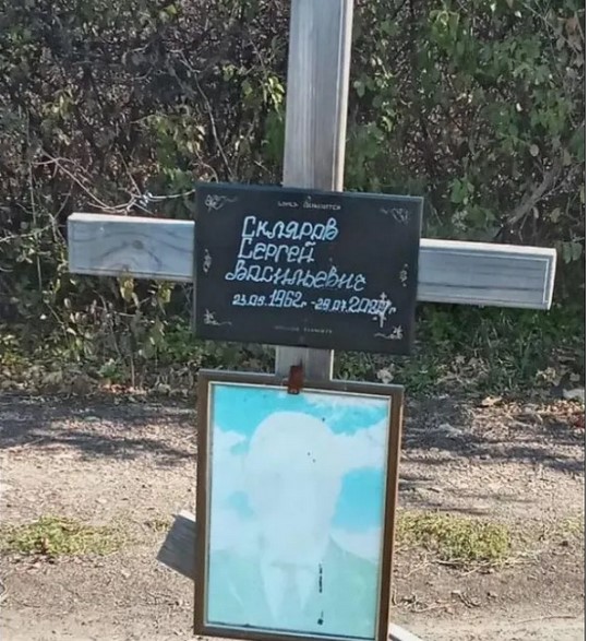 Информация взята, в том числе, с фотографии могильного креста. Сергей Скляров числится в базе «Миротворца» боевиком незаконных вооруженных формирований, но здесь пока не знают о его смерти.