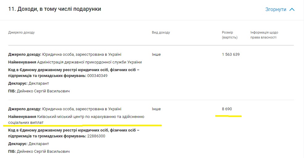 Два года службы позволили Сергею Васильевичу значительно упрочить материальное положение. Во-первых существенно возросла зарплата – она теперь составляет 1 563 639 гривны. Но этого оказалось мало и глава ГПСУ получил еще восемь тысяч социальной помощи: