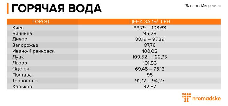 Если речь идет о горячей воде — цена может отличаться в зависимости от того, подключен ли ваш дом к центральному тепловому пункту, или в нем есть индивидуальный. А еще от того, есть ли у вас в квартире сушилка для полотенец.
