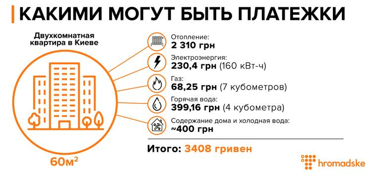 За все эти услуги нашим воображаемым киевлянам придется заплатить 3007,81 гривны. К этому еще надо будет добавить холодную воду и содержание дома, в том числе вывоз мусора. А значит, общая сумма в платежке будет где-то 3,5 тысячи.