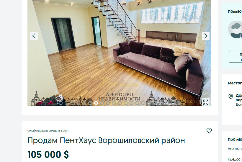 «Апостроф» уточняет, что за 100 тысяч долларов можно купить двухэтажный пентхаус в центре Донецка на 210 квадратных метров — 5 спален, 4 санузла и сауна прямо в квартире!
