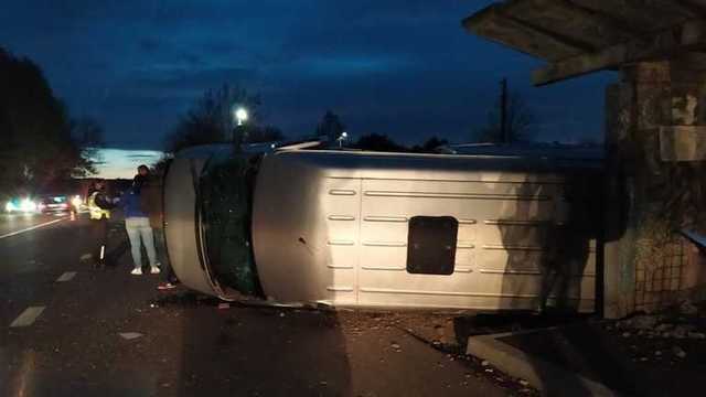 Бус перевернулся, но серьезных травм никто не получил / Фото с телеграма "Калуський Формат +"