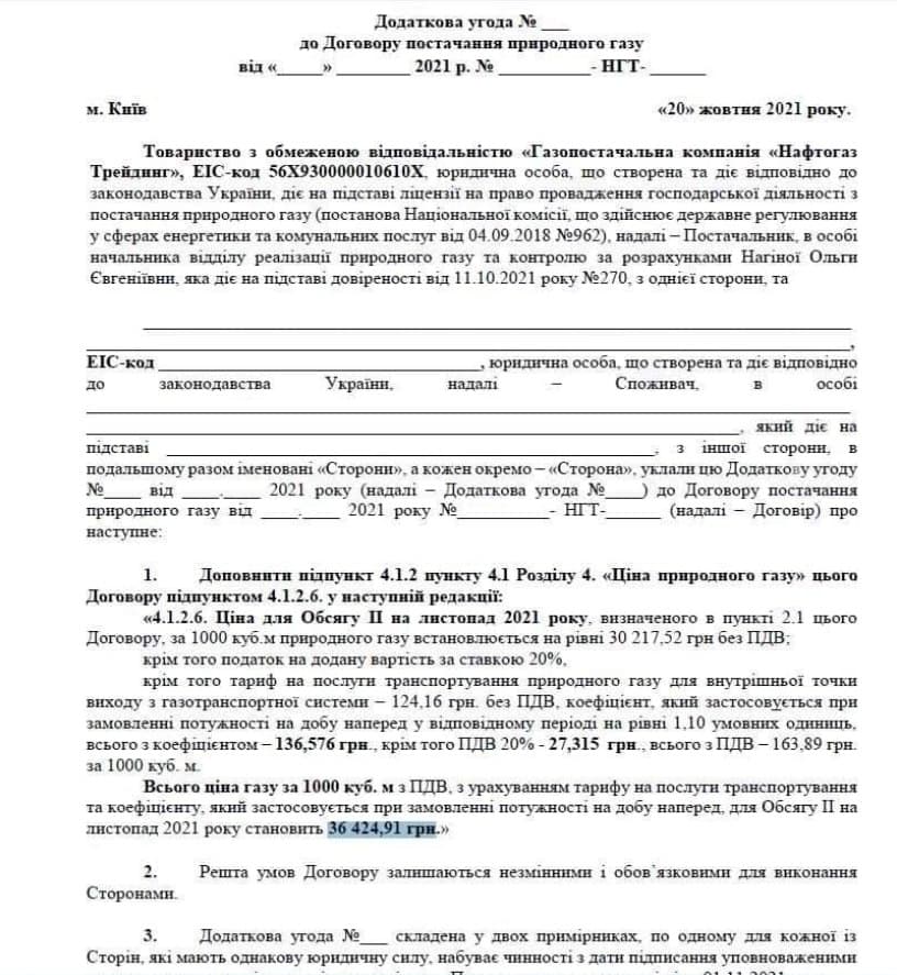 В Киеве объединения совладельцев многоквартирных домов получили от газопоставляющей компании «Нафтогаз трейдинг» дополнительные соглашения на поставку газа на ноябрь 2021.