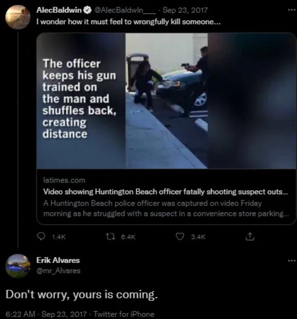 Жуткий комментарий под постом / Скриншот с твиттера Алека Болдуина