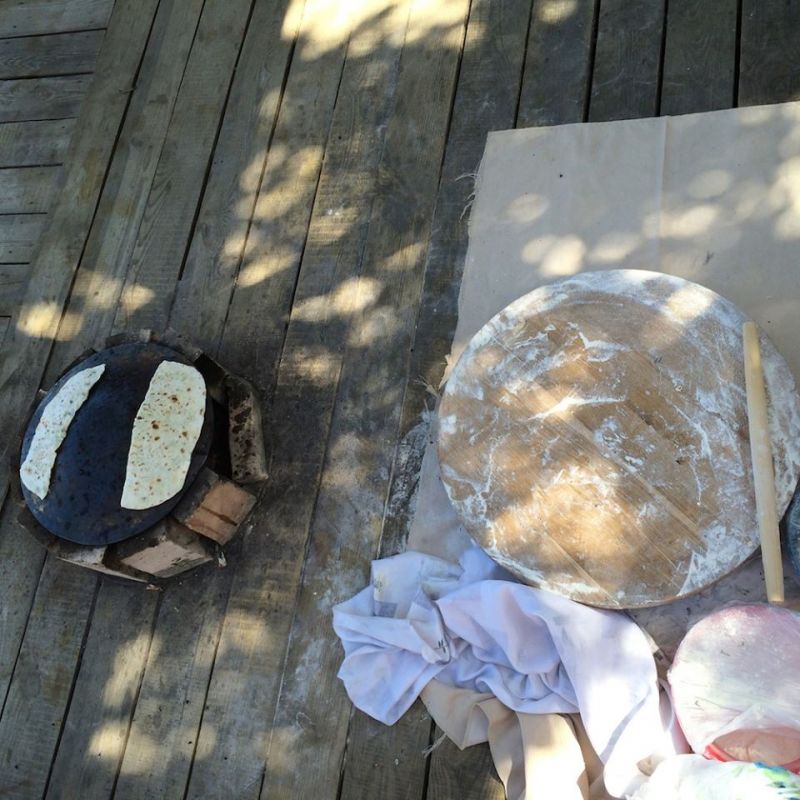 В ресторане на пляже бабушка делает кутабы, наверное, так эти лепешки называются