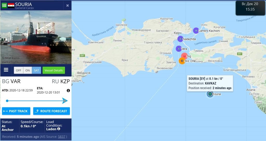 И уже 23 декабря 2020 года Souria появилась возле порта Севастополя.