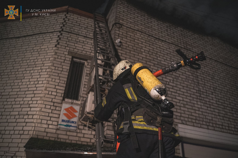 ЧП случилось по адресу улица Бойчука, 45 в Голосеевском районе столицы. Информация о происшествии поступила на линию спасателей в 20:19. Бойцы ГСЧС оперативно прибыли на место и установили, что загорелся второй этаж здания, где находилось СТО. Огонь охватил площадь размером 200 кв.м.
