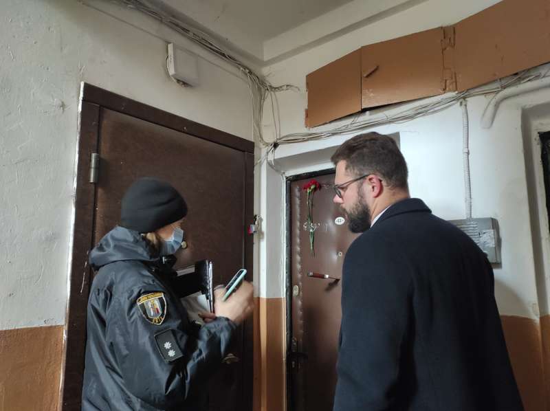 Неизвестные сегодня ночью, 15 ноября, воткнули нож в дверь квартиры Дмитрия Перова, юриста "Карты реновации" и члена партии "Народовластие", защищающего исторические памятники Киева от сноса и застройки. Также клейкой лентой были приклеены две гвоздики.