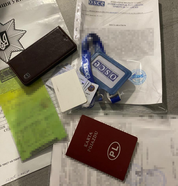 В ходе обысков у подозреваемый изъяты десятки поддельных удостоверений с логотипом ОБСЕ, печати и бланки фейковой организации, а также поддельные удостоверения сотрудников полиции и других представителей органов власти.