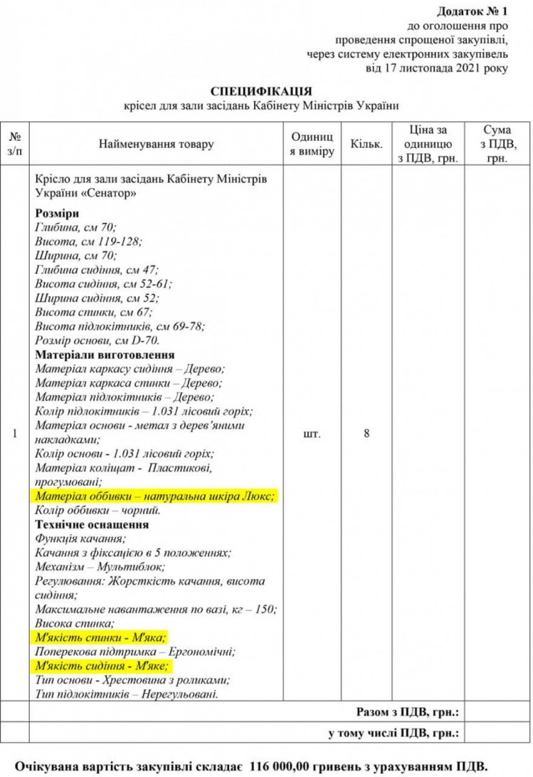 Згідно зі специфікацією, це мають бути м’які крісла класу Люкс з натурального дерева, оббиті натуральною шкірою.