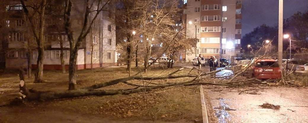 Суспільне сообщило, что на улице Ощепкова дерево упало прямо на крышу автомобиля Kia. К счастью, люди в результате инцидента не пострадали.