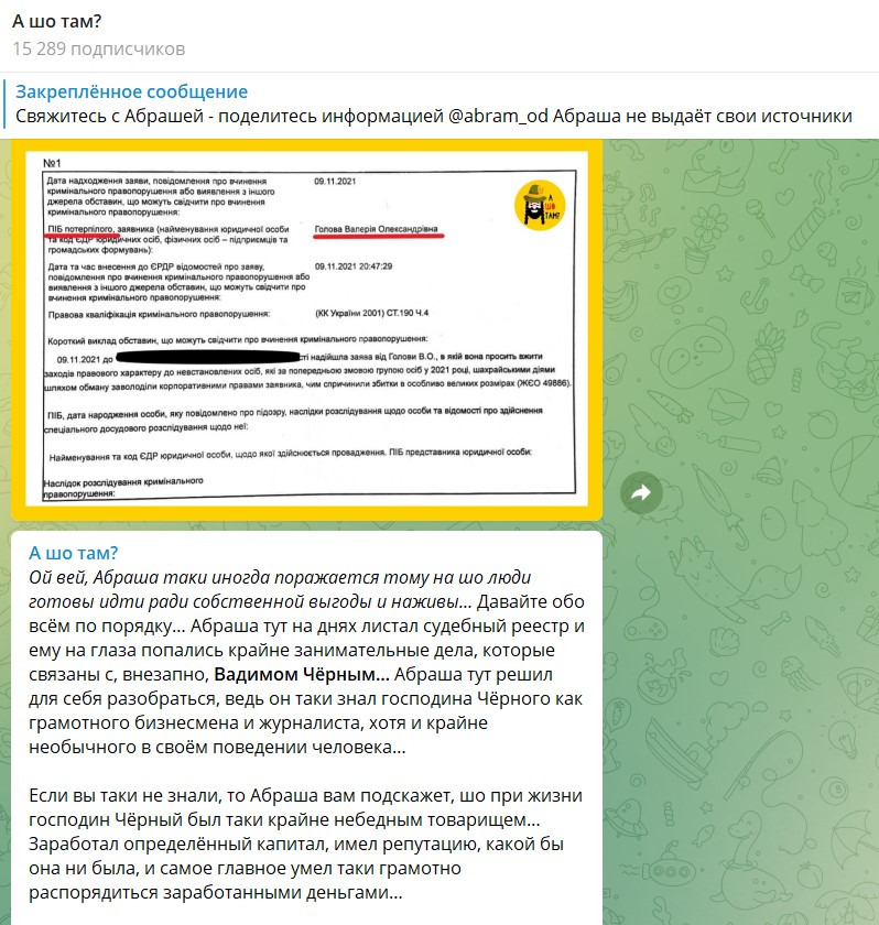Ещё один авторитетный Одесский telegram-канала "Ирочка расскажет…", что об этой ситуации уже осведомлены высокие чиновники из столицы, которые также в курсе о ситуации с точки зрения её морального аспекта, что полностью исключает для Аркадия Чёрного возможность о чём-то договорится, хотя он и бегает с этой целью по всей Одессе.