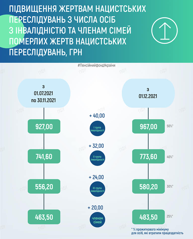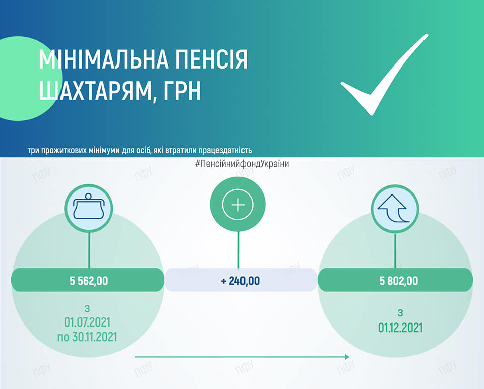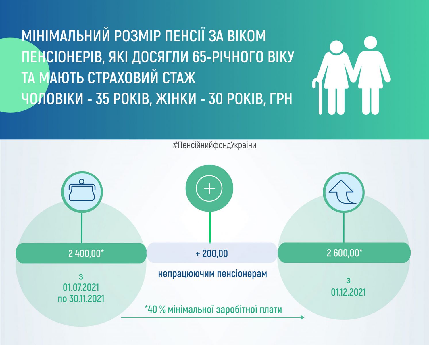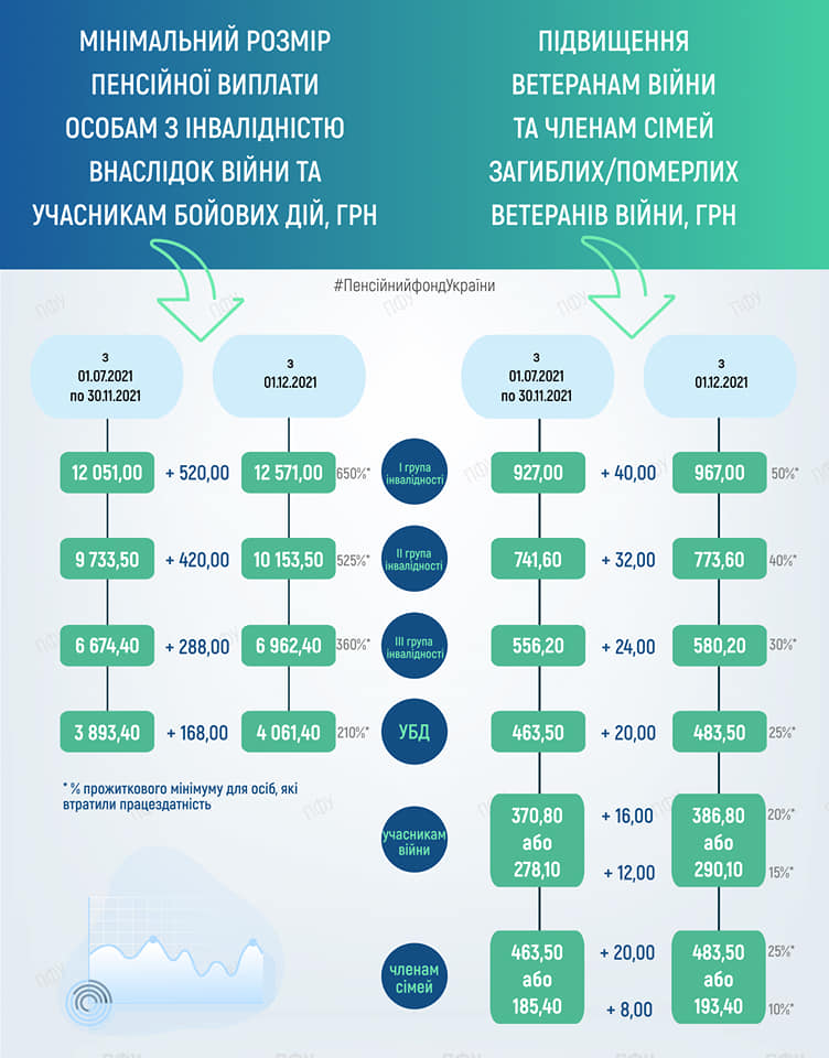 Соответствующая инфографика размещена на страничке ПФУ в социальных сетях. Напомним, что теперь минимальная зарплата составляет 6 500 гривен, а прожиточный минимум для лиц, утративших трудоспособность — 1 934. Эти показатели учитываются при расчете различных пенсионных выплат.