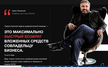 Что же представляют из себя эти активы? Вот, например, главный из них – сеть ресторанов «Суши-мастер». Это российская фирма, и она даже имеет свой сайт. Владельцы домена – ООО «Суши-мастер Центр». Основано это юридическое лицо в 2017 году, и его учредителем является уже упомянутый Алекс Яновский. Правда, в своей презентации ребята из Х100 утверждают, что первые заведения «сэр Алекс» открыл еще в 2014 году. Спрашивается: как же они три года работали без юридического лица?
