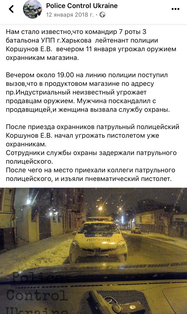 Нападника затримали та відвезли до місцевого відділу поліції. Ним виявився колишній патрульний Коршунов Євген Валерійович. Як раніше повідомляв Police Control Ukraine, у 2018 році патрульного Коршунова Євгена затримували через погрози зброєю працівникам магазину.