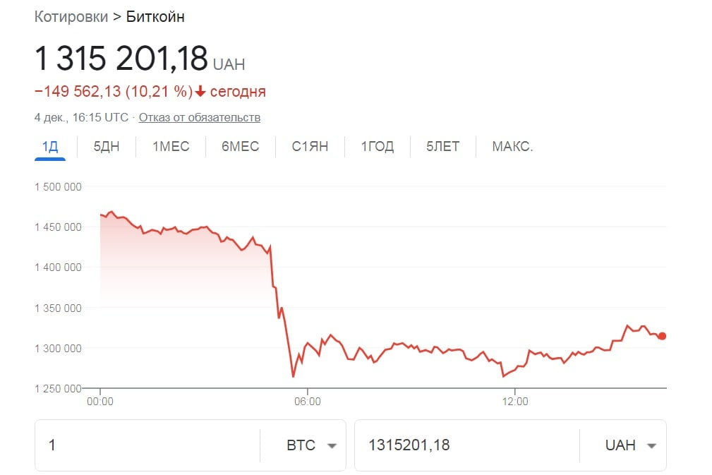 По состоянию на 12:00 по Киеву субботы, 4 декабря, криптовалюта торгуется на отметке 47,5 тысяч долларов. Это минимум с конца сентября текущего года.