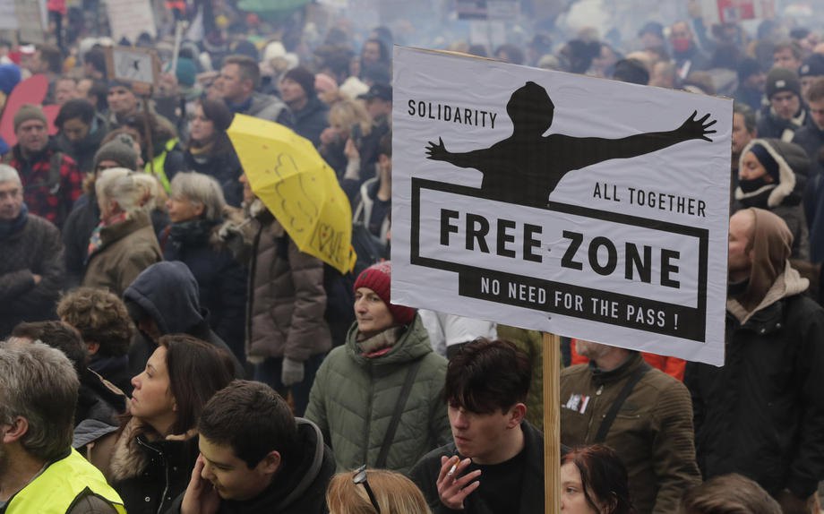 Организаторы протеста отметили, что считают недемократическим ввод ковид-паспортов.