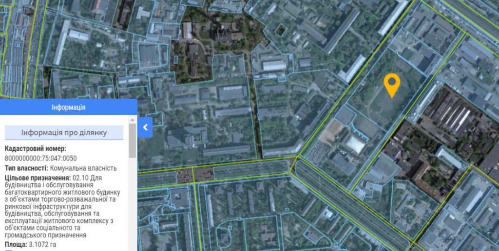 На Публичной кадастровой карте Украины видно, что жилой комплекс собираются возводить на месте стадиона.