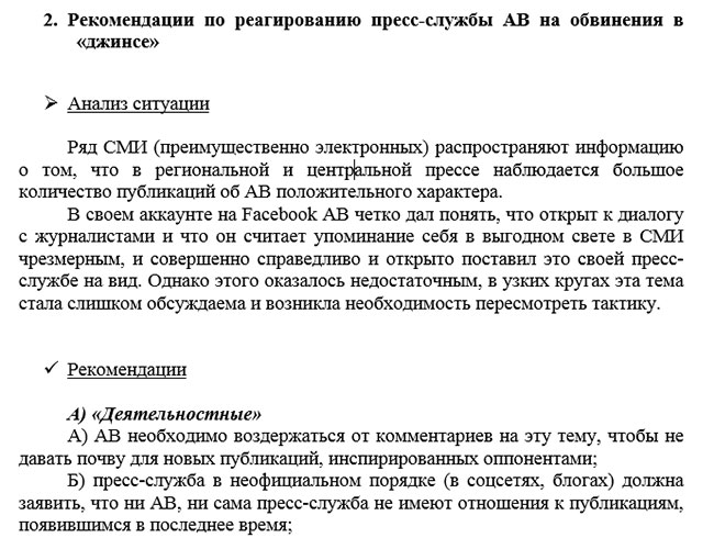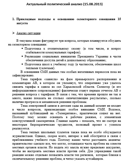 Також з наступних аналітичних записок видно, яким чином формується порядок денний роботи віце-прем’єра. А виходячи з професійного "сленгу", який активно використовується в тексті - його писала людина, яка раніше працювала в Російській Федерації. Вкотре вітчизняні чиновники шукають "допомоги" у північного сусіда, багатого на медійні кадри.