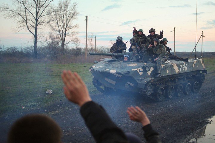 Второй день антитеррористической операции на востоке Украины. Власти стягивают к Донецкой области танки и бронетранспортеры. Бойцы "народной самообороны" утверждают, что в бой армия пока не вступала.