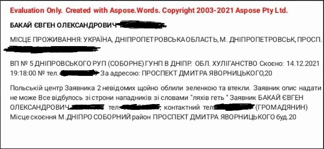14 декабря в криминальных сводках МВД Днепра появилась информация о нападении на заместителя руководителя Польской общины в Днепре Евгения Бакая.