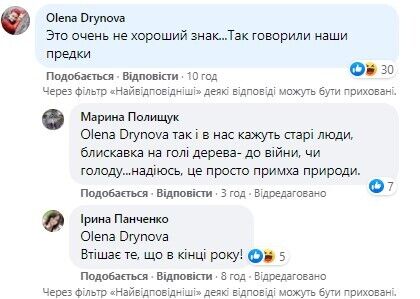 "Редкое, но вполне нормальное явление. Что касается примет, то мои бабушки тоже говорили, что это к беде. Но я уже столько гроз видела за свою жизнь и в ноябре-декабре, и в феврале-марте – что уже все вымерли, если бы то правда была", – написала пользователь под ником Halyna Chorna.