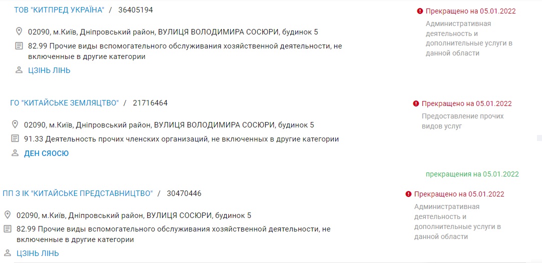 Во времена Порошенко Сяосю подвизался в качестве руководителя Общественной организации «Китайское землячество» и ООО «Китпред Украина»: