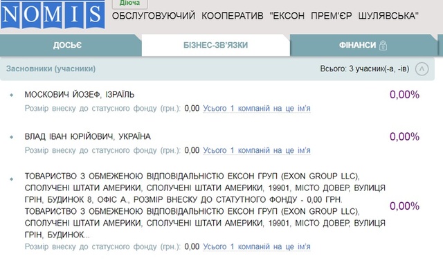 Такая же мутная и сама фирма-застройщик. Застраивать эту землю должен обслуживающий кооператив «Эксон Премьер Шулявская», владельцами которого являются Йозеф Москович из Израиля, Иван Влад из Закарпатья и компания «Эксон Групп» (Exon Group LLC) из США.