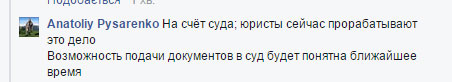 Писаренко вже зазначив, що юристи вивчають можливість судового позову.