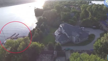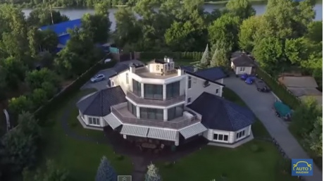 Автомайдан зняв на відео цей будинок з висоти пташиного польоту. На відео можна побачити машини, човни, гаражі в будівлі, а сам будинок виглядає як житловий.