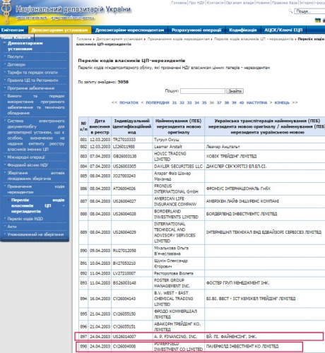 | Перелік кодів міждепозитарного обліку, які призначені НДУ власникам цінних паперів - нерезидентам. Клікніть для збільшення |