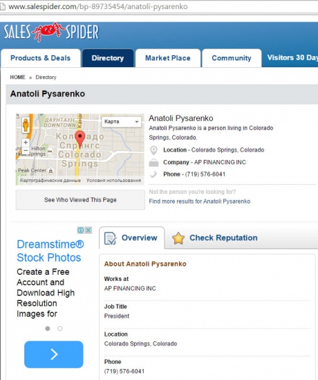 Як встановила "Українська правда", це компанія-нерезидент, яка зареєстрована у США, штаті Колорадо у Колорадо Спргінгс. Президентом компанії вказаний Анатолій Писаренко. Охоронці будівлі в неформальній бесіді з представниками Автомайдану підтвердили, що в цьому будинку перебуває Писаренко, зазначивши, що зараз його немає, а до нього можна звернутися в офіс.