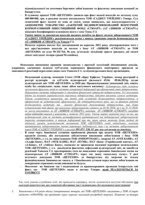Вывод сформированной в результате «схематоза» прибыли в 400 000 000 грн. через «вексельную» схему на АТ «ЗНВКІФ «СТЮАРТ» конечным бенефициаром которого является Григорий Топал.
