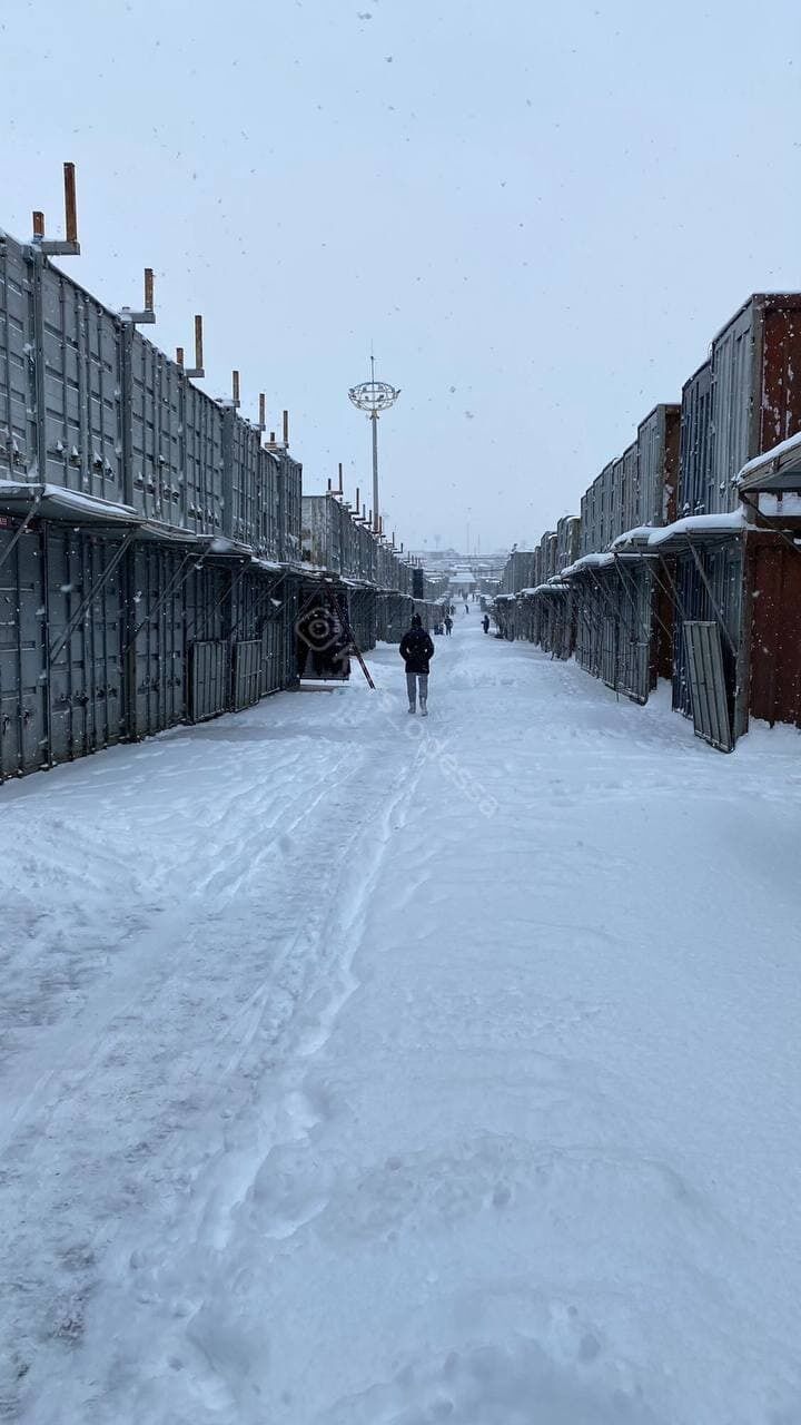 На рынке "7-й километр" под Одессой предпринимателям приходится самим расчищать сугробы.