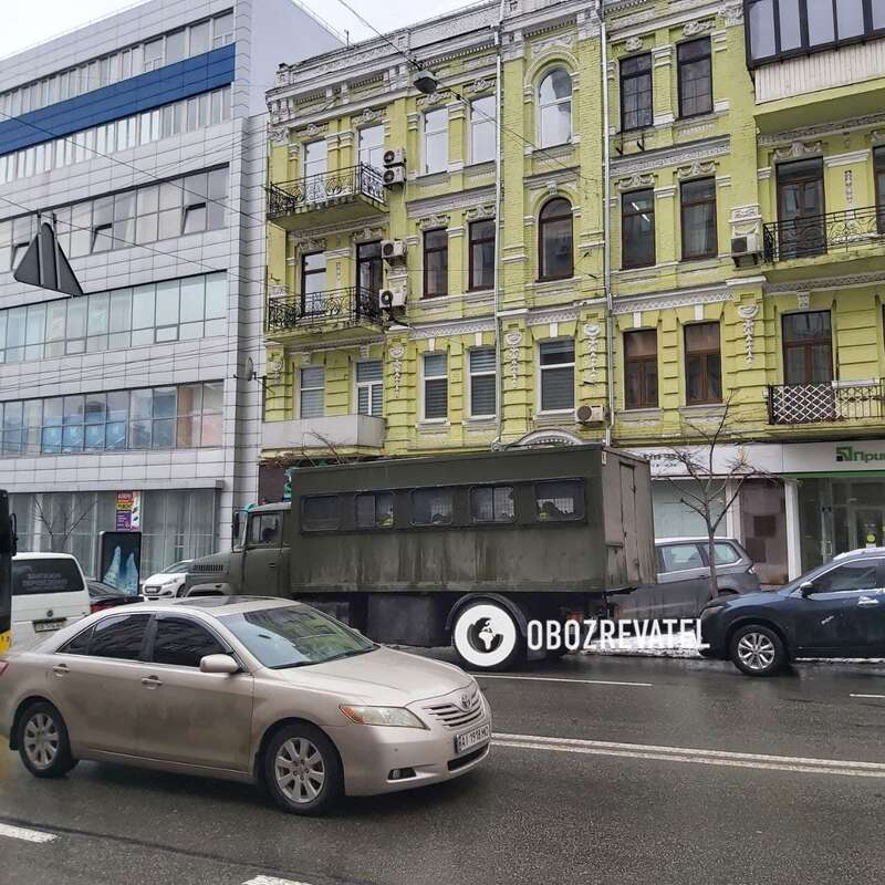 Под ГБР уже дежурит дюжина полицейских и запаркованы два КрАЗа с бойцами Национальной гвардии.