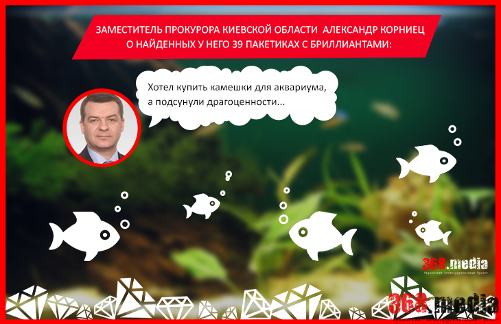 Первое место занял заместитель прокурора Киевской области Александр Корниец, который вместе с первым заместителем начальника главного следственного управления ГПУ Владимиром Шапакиным вымогал у предпринимателя взятку в 3,15 млн. гривен. Во время обыска у него в сейфе обнаружили 39 пакетов с бриллиантами. По данным СМИ, «надзорник» тогда заявил, что его обманули и подсунули драгоценности под видом камней для аквариума.