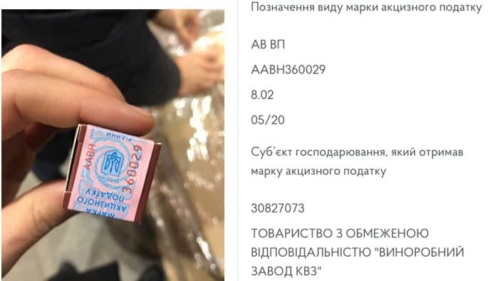 Поддельность марок подтверждает их маркировка. Они были куплены ТОВ "Виноробний завод КВЗ" и предназначались для алкогольной продукции.