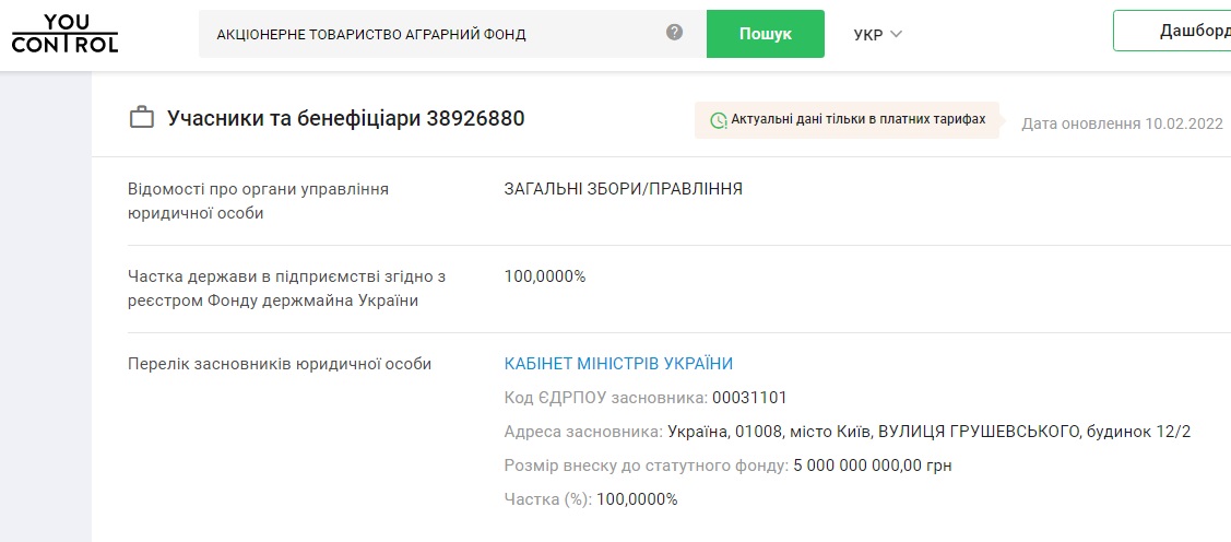В Украине существует, например, АО «Аграрный фонд». Основателем выступает государство, а единственным держателем пакета акций – Кабмин: