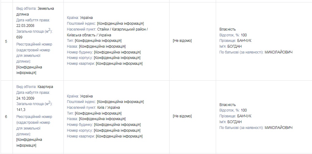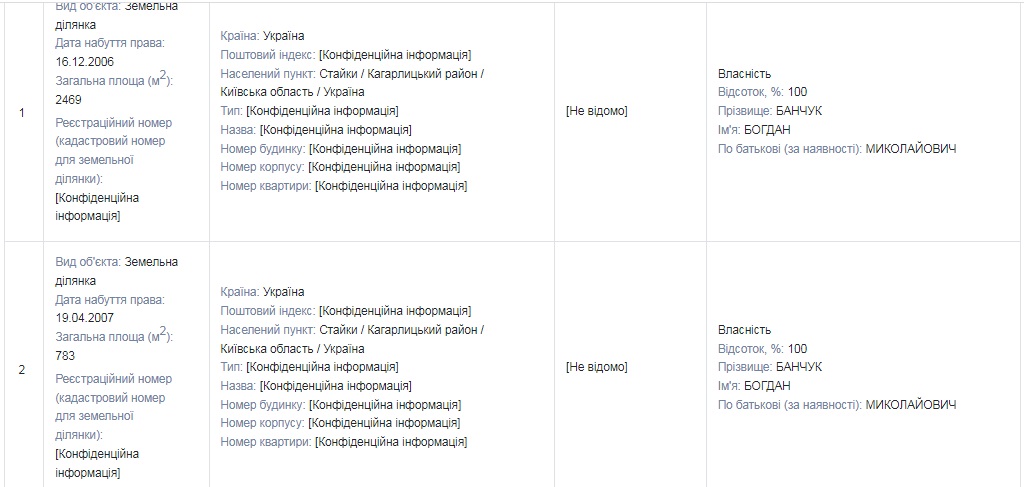 А теперь – к декларации. Объектов недвижимости, которые указал в качестве своей собственности Богдан Банчук, в ней насчитывается 23. Это – 17 земельных участков, расположенных в основном в окрестностях Киева, четыре квартиры (три – в Киеве), дом в селе Стайки Кагарлыцкого района Киевской области и гараж.