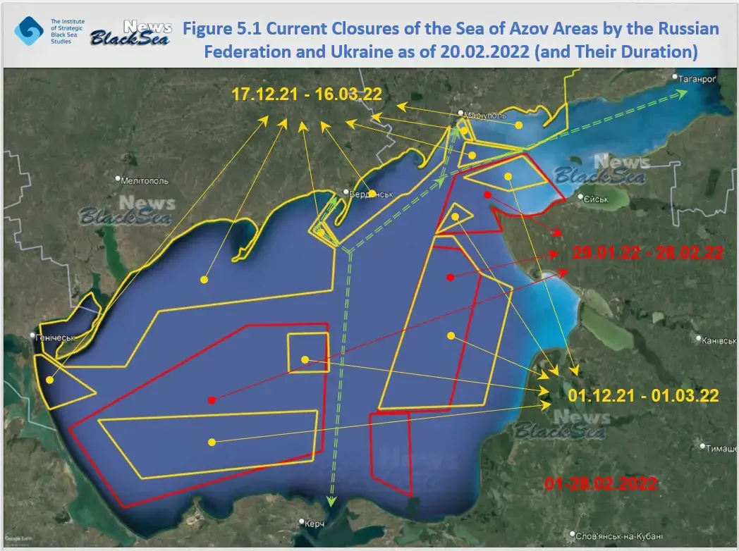 Клименко отметил, что новых перекрытий районов Азовского моря не было, однако там и без того достаточно закрытых районов, в частности напротив Мариуполя.
