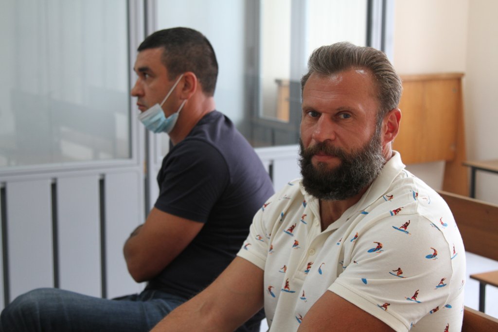 Обвиняемые Виталий Блинник и Евгений Смицкий (слева направо) в Киевском райсуде Полтавы, 21 июля 2021 года. Фото: Ганна Соколова, Ґрати
