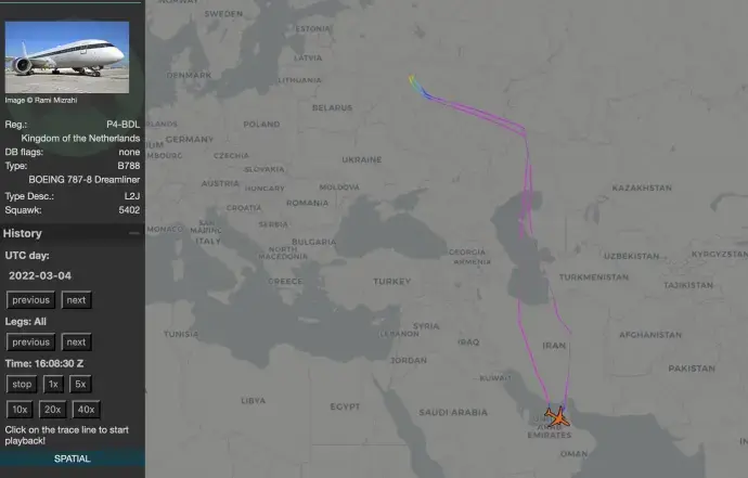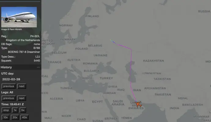 Борт Романа Абрамовича Boeing 787-8 Dreamliner за время войны уже дважды летал в Дубай. Впервые 28 февраля. 4 марта он вернулся в Москву и в тот же день снова вылетел в Дубай.