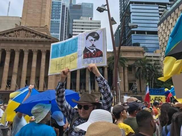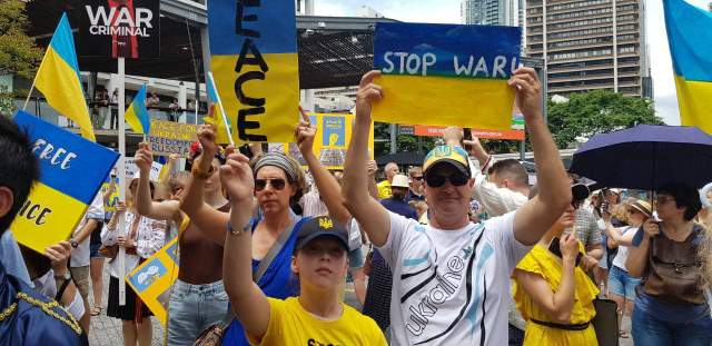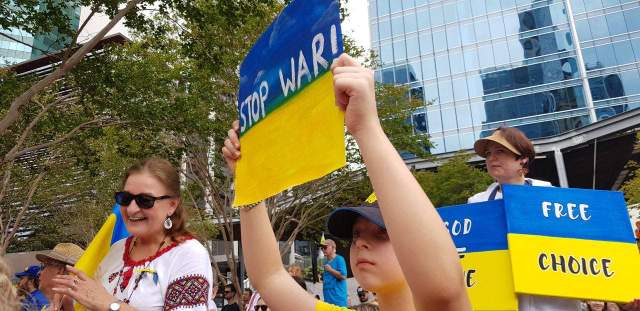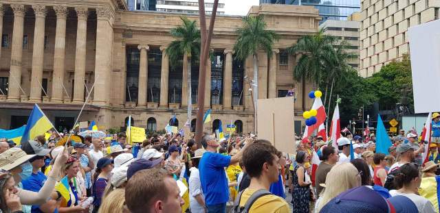 Некоторые митингующие были одеты в украинские вышиванки и имели традиционные женские веночки на голове. Выразить свою поддержку Украине вышли жители города Брисбен.