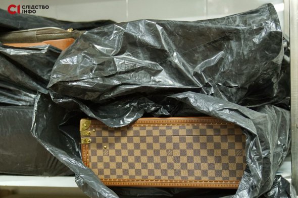 В подвале Медведчуки хранили чемоданы Louis Vuitton и другие дорогостоящие предметы. Из-под черного мусорного пакета виден чемодан, внешне напоминающий модель Louis Vuitton Alzer-80. На официальном сайте он стоит около 400 тыс. грн.