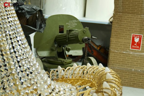 Рядом с хрустальной люстрой – пулемет "Максим". Его Медведчуку подарили охранники и водители в 2004 году в честь 50-летия.