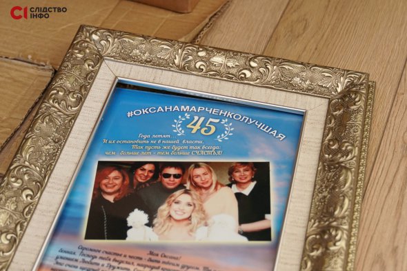 В следующей комнате - тоже картины. На одной из них нарисована Оксана Марченко, рядом лежит рамка с надписью "Оксана Марченко лучшая".