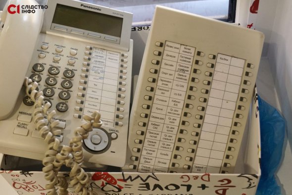На подоконнике стоит стационарный телефон с подписями на кнопках: "релакс-зона", "джакузи", "бассейн", "белая комната", "спортзал", "каминный зал", кабинеты, спальни и многое другое. Даже "кинотеатр" и "колыба".